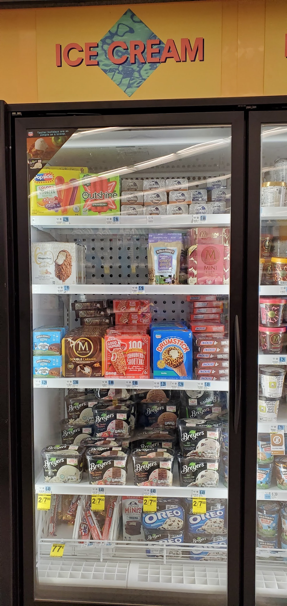 Everything on this endcap sign is 100% outdated, from the logo to the slogan. This sign may probably have been here since the store's opening!